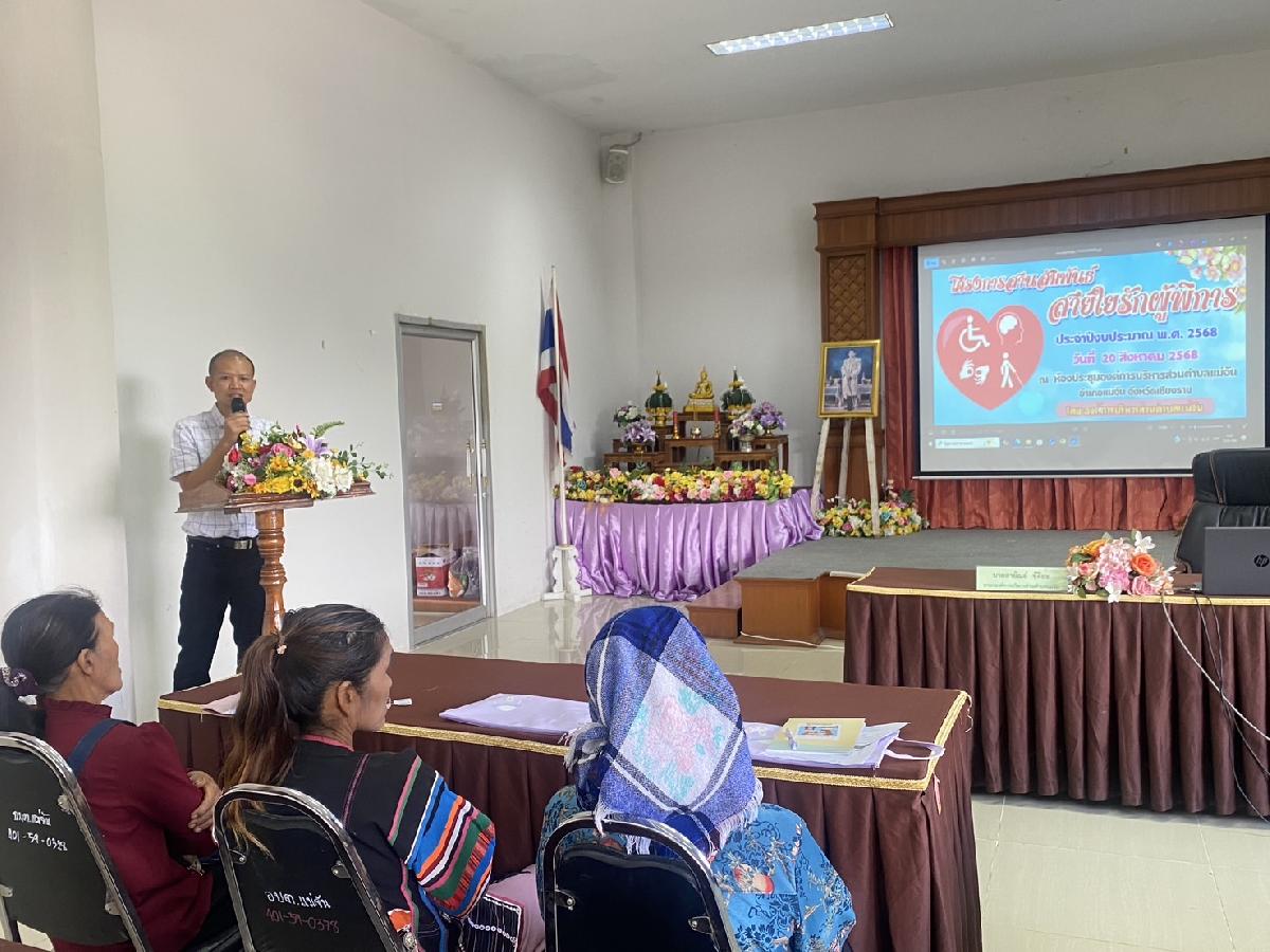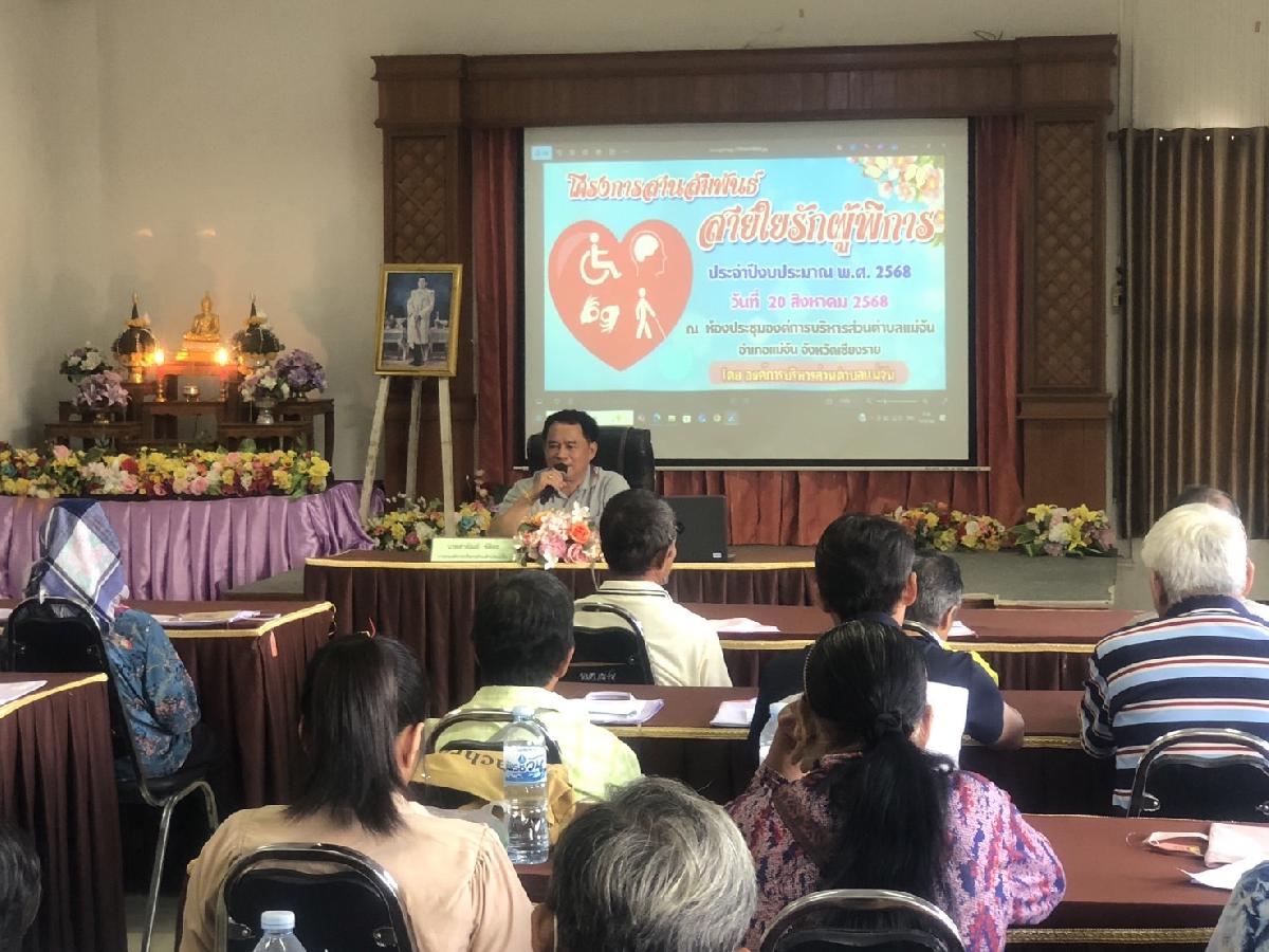 วันที่ 20 สิงหาคม 2568 งานพัฒนาชุมชน สำนักปลัด อบต.แม่จันได้จัดอบรมโครงการสานสัมพันธ์สายใยรักผู้พิการ ประจำปีงบประมาณ พ.ศ.2568 มีนายกองค์การบริหารส่วนตำบลแม่จัน นายสายัณย์ ขัติยะ เป็นประธานในพิธีเปิด และผู้เข้าร่วมโดยมีคณะผู้บริหาร และสมาชิกสภา อบต.แม่จัน กลุ่มเป้าหมายเข้าอบรมเป็นผู้พิการและผู้ดูแลผู้พิการ