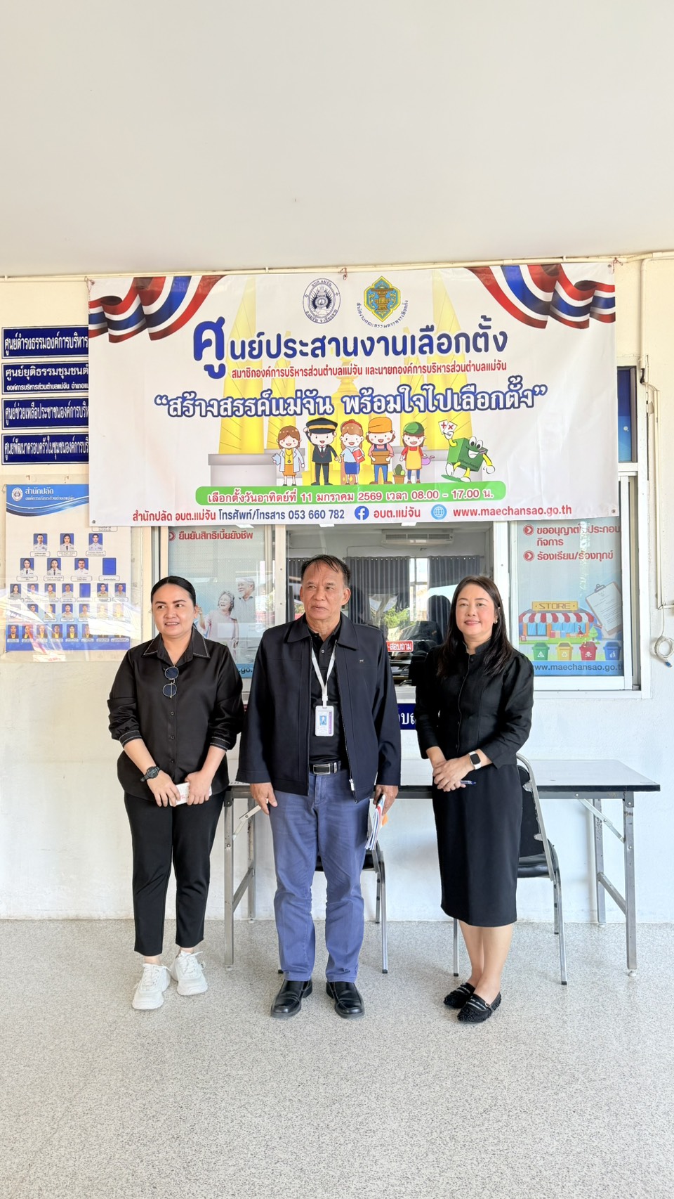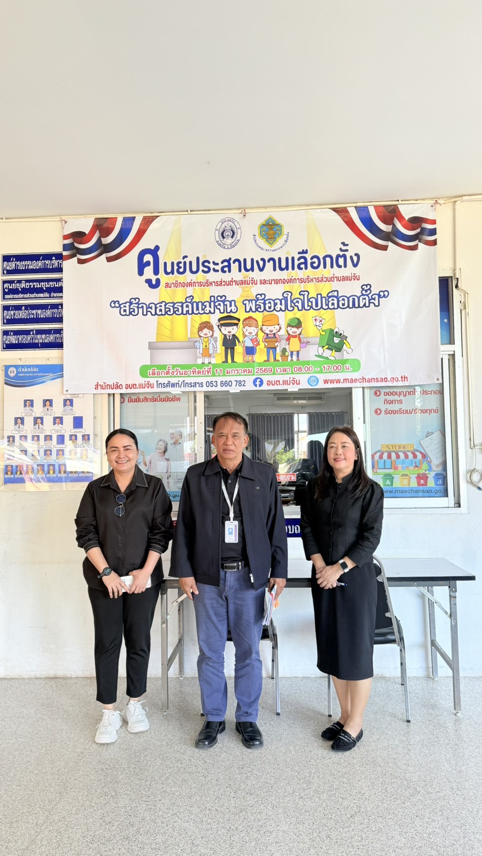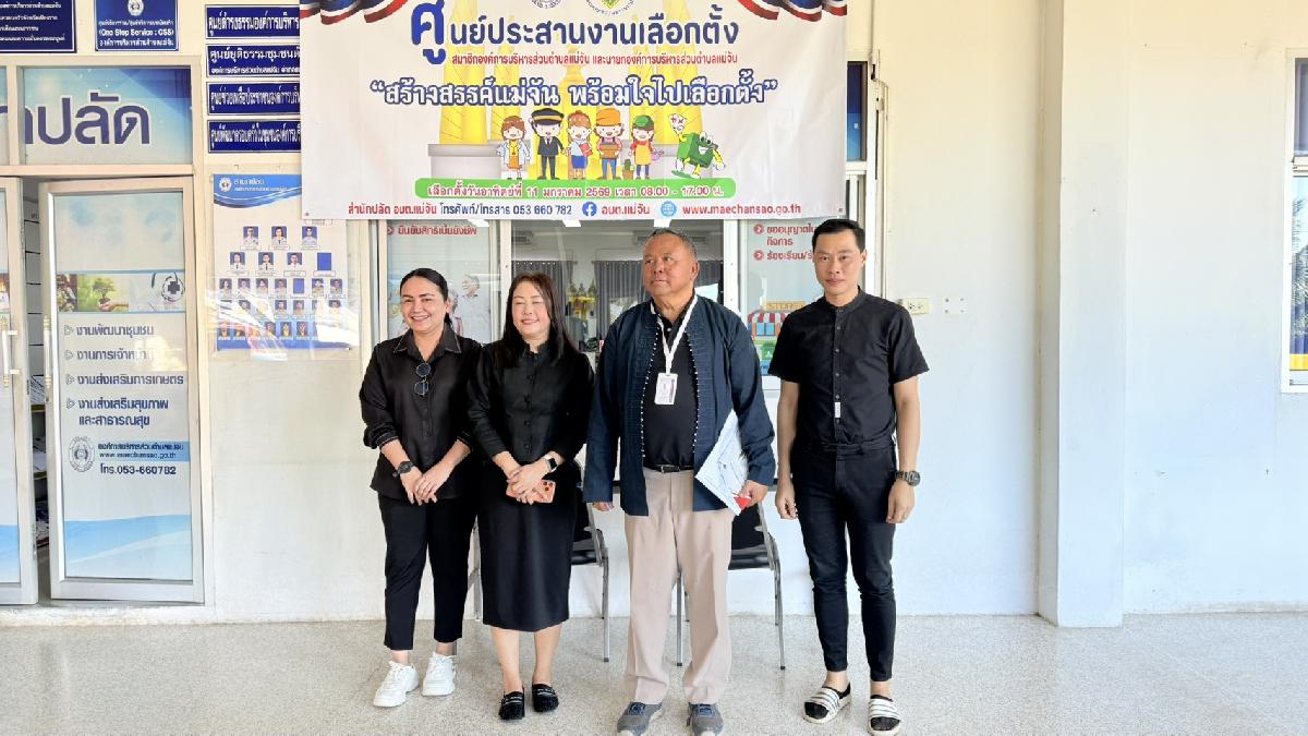 วันจันทร์ที่ 15 ธันวาคม 2568 ผู้ตรวจการเลือกตั้ง พ.อ. ธัชรักษ์ ชัยชนะ พ.ต.ท. เอกมล พงษ์ภูวนันท์ ได้ออกมาตรวจเยี่ยมศูนย์ประสานงานเลือกตั้ง องค์การบริหารส่วนตำบลแม่จัน โดยมี น.ส.สุดา ปฏิเสน ผู้อำนวยการการเลือกตั้งองค์การบริหารส่วนตำบลแม่จัน และนิติกรให้การต้อนรับ