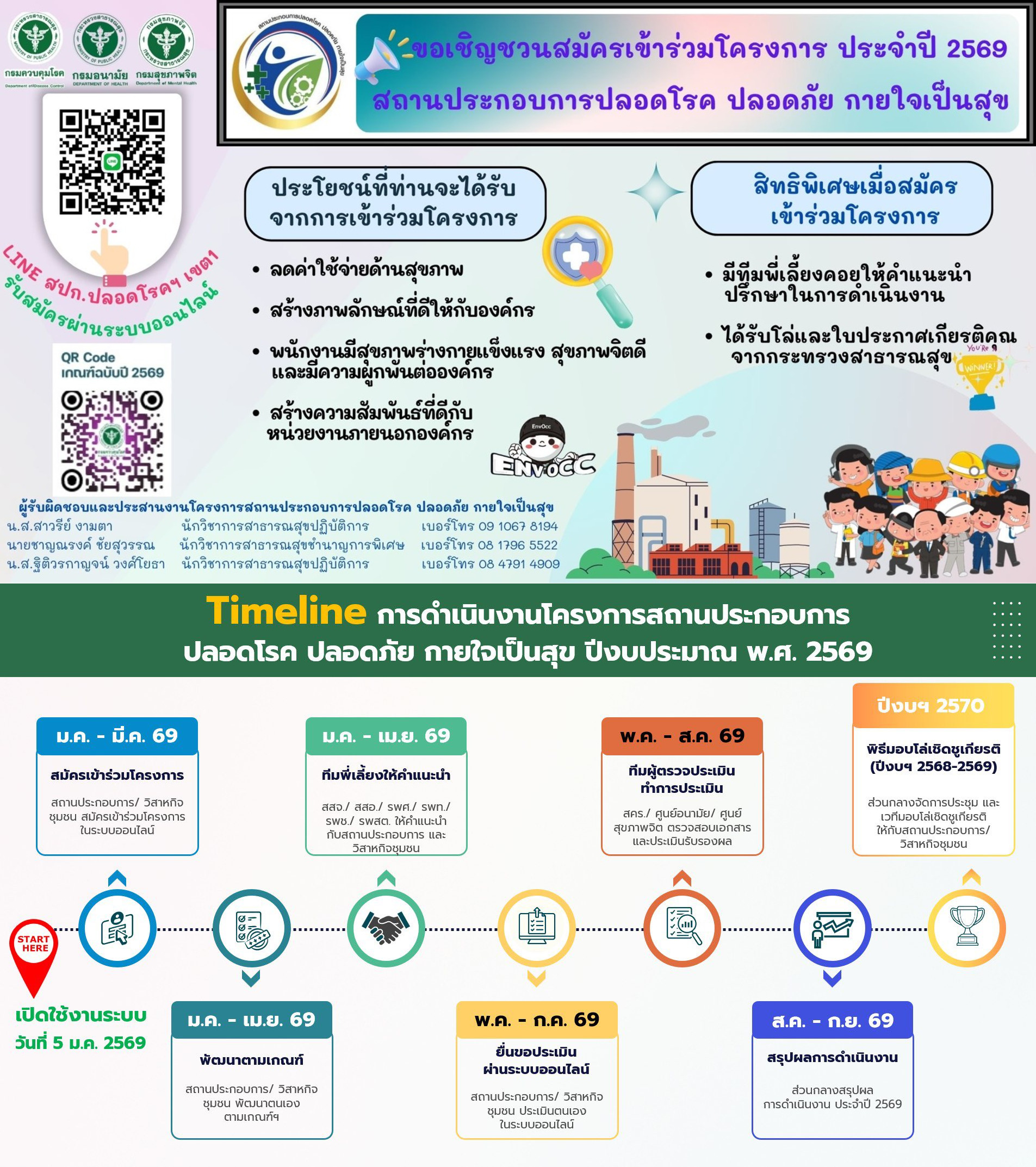 ขอเชิญชวนสมัครเข้าร่วมโครงการ ประจำปี 2569 สถานประกอบการปลอดโรค ป