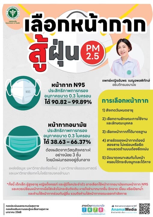 กรมอนามัย แนะ ❝เลือกหน้ากาก สู้ ฝุ่น PM2.5❞