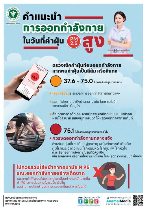 ❗ควรงดออกกำลังกายกลางแจ้ง
